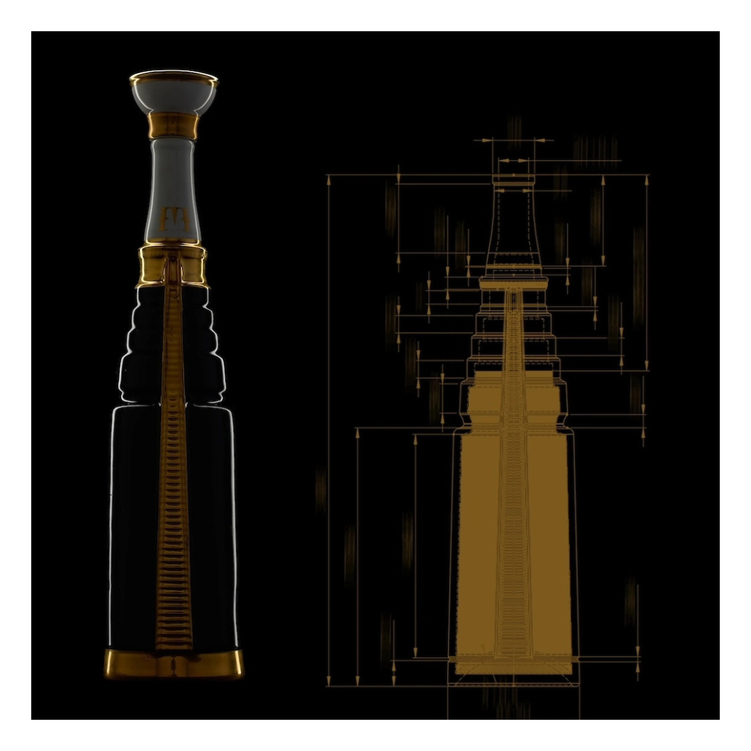 Progettata con l’aiuto dell’intelligenza artificiale e perfezionata dai maestri artigiani, ogni bottiglia incanta vista e tatto. Le decorazioni in oro applicate a mano e le forme geometriche ispirate all’architettura antica conferiscono lusso, esclusività e perfezione estetica, trasformando ogni bottiglia in un oggetto d’arte che racconta eleganza, maestria e raffinatezza.